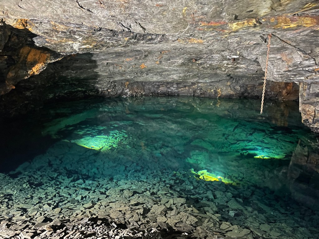 Deep within Carnglaze Caverns lies its crowning jewel – the fabled Underground Lake, also known as the Blue Pool. A spectacle of ethereal beauty, its crystalline waters shimmer with shades of azure and emerald, casting an otherworldly glow on the surrounding rock formations. Stand on the platform overlooking the tranquil expanse, and let your imagination take flight. Perhaps the whispers of ancient tales resonate through the cavern, as the lake holds the secrets of the past, locked within its depths.